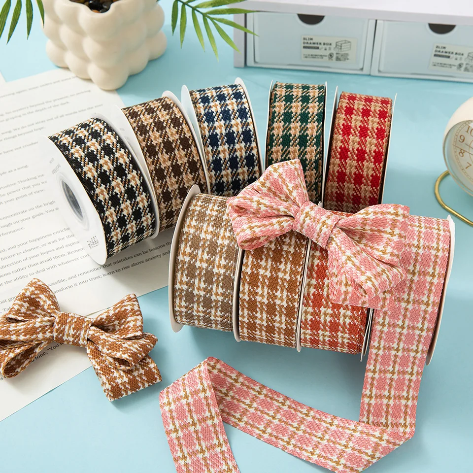 4cm Vintage Two-tone Houndstooth Polyester Butterfly Bow Ribbon Contrast Color Stripe Hair Accessories Shoe Flower Gift Box