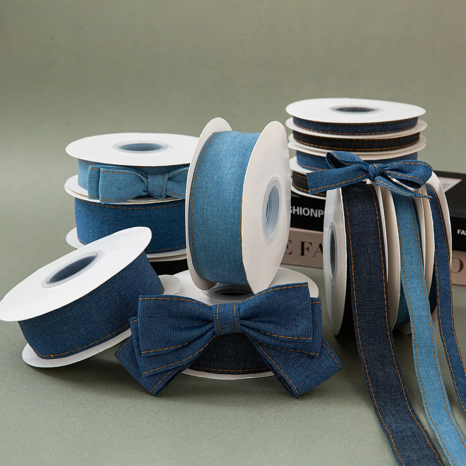 Double-Sided Solid Handmade Denim Ribbon DIY Bow Flower Packaging Clothing Shoe Accessories Decorative China