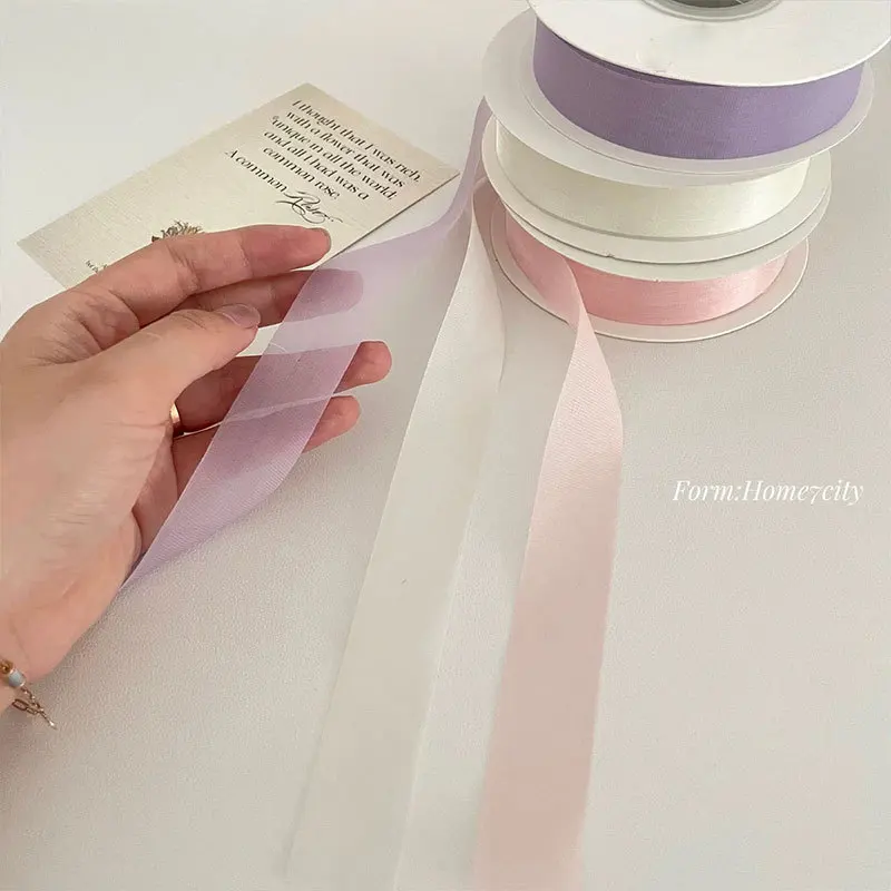 2.5cm 100% Polyester Silk Milk Organza Ribbon Semi-Transparent Fresh Flower Gift Wrapping Bow Hair Accessory Material No Pattern