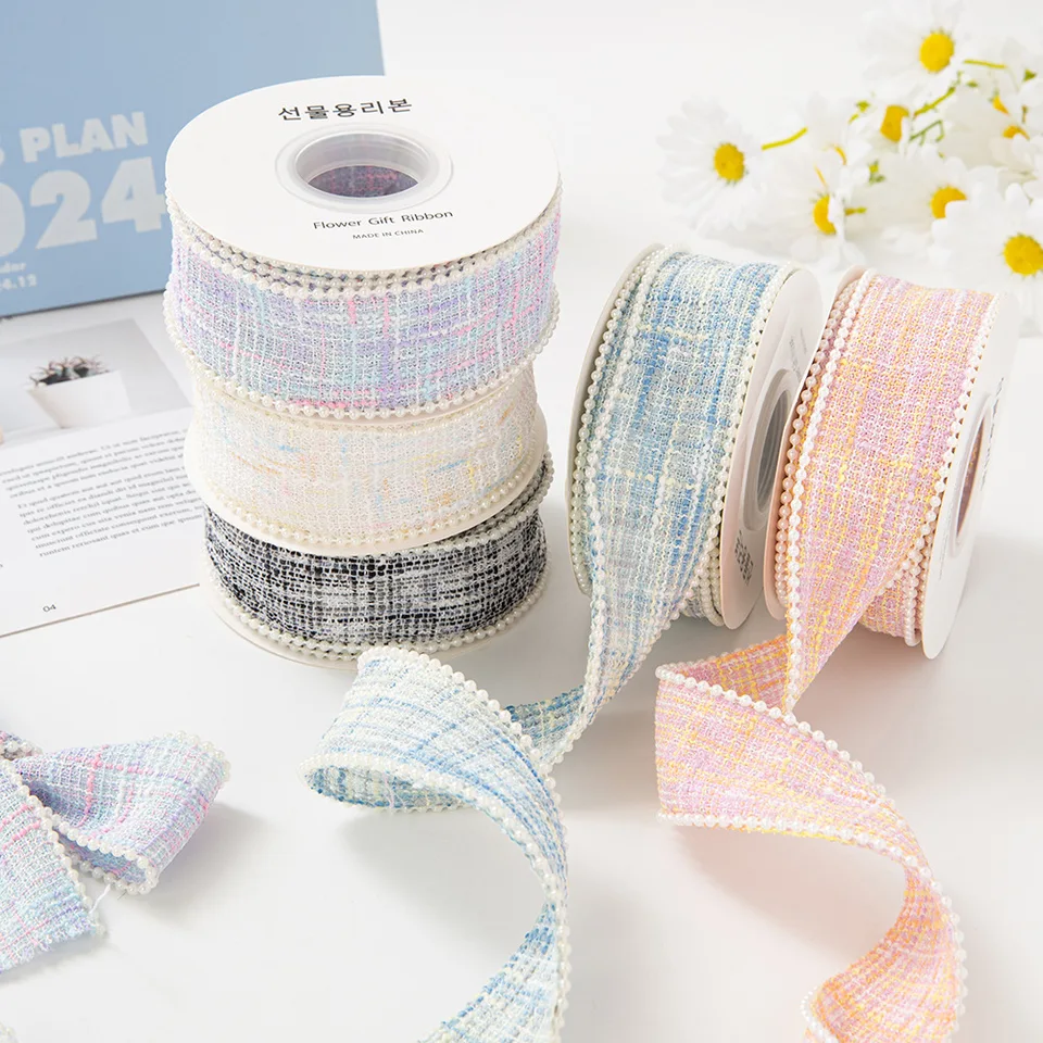 Handmade 3.8cm X 10yard Polyester Pearl Ribbon for Christmas Tree Decoration & Gift Packaging Eco-Friendly Hair Accessories